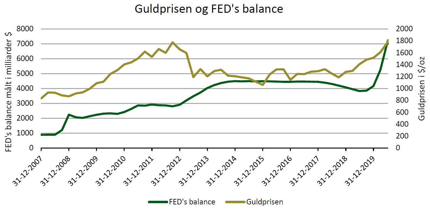Opsummerende er der altså en strukturel medvind til guld. Ikke alene den stigende usikkerhed i samfundet pga. COVID-19, men også de enorme pengemæssige lempelser fra centralbankerne, vil begge være stærke drivkræfter fremadrettet. Hos TimeInvest følger vi udviklingen i guldprisen tæt og har gode idéer til, hvordan du på den bedst mulige måde kan sammensætte en portefølje og få den ønskede eksponering til guld. En beslutning som kan blive guld værd.