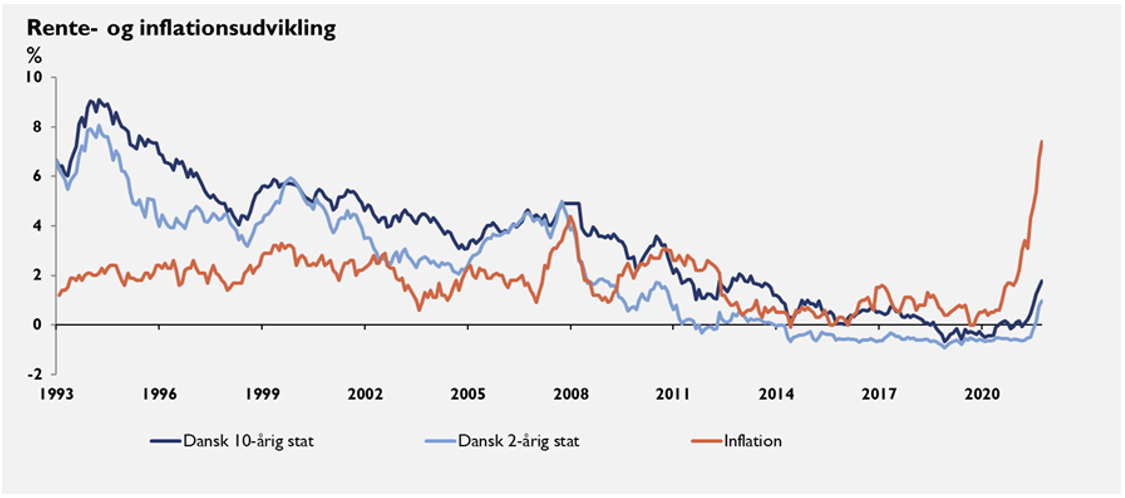 Derfor forsøger de at dæmpe efterspørgslen via strammere pengepolitik, altså højere renter, som dæmper boligmarkedet og efterspørgslen efter langvarige forbrugsvarer.