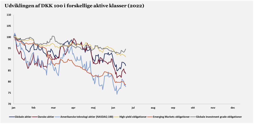 De finansielle markeder har været ramt af en historisk dårlig udvikling i første halvdel af indeværende år. Således har halvåret været præget af tab på de fleste aktivklasser, som generelt set har medført at investorer har haft tab på både deres aktiebeholdning og deres obligationer. Det er heldigvis et sjældent forekommende fænomen, men det gør ikke smerten mindre i år.