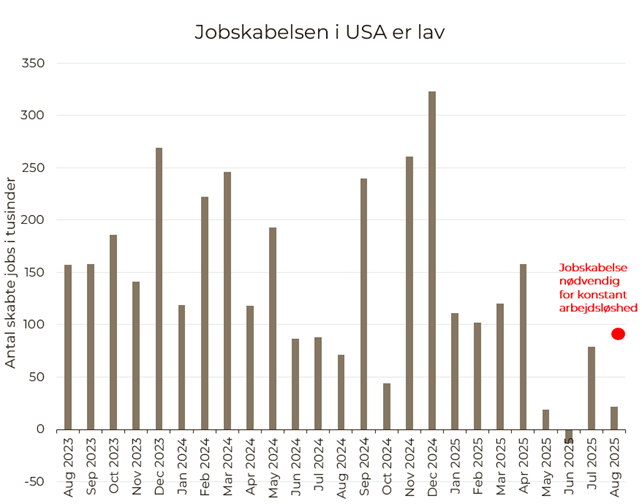 Efter vores vurdering forstyrrer Trumps hårde immigrationspolitik dog lige nu jobtallene. Samtidig er økonomisk vækst ikke på samme måde som tidligere afhængig af høj jobskabelse, da kunstig intelligens giver en produktivitetsgevinst i mange brancher.